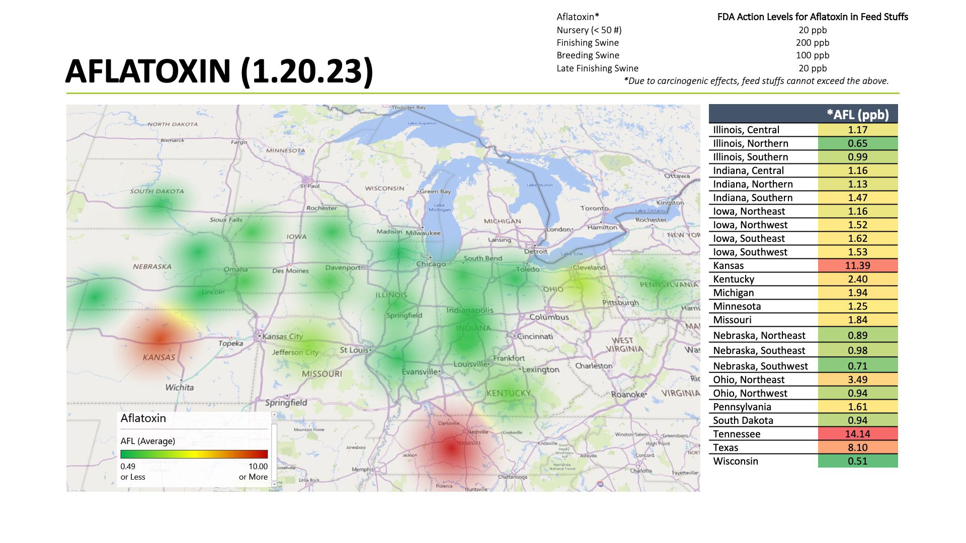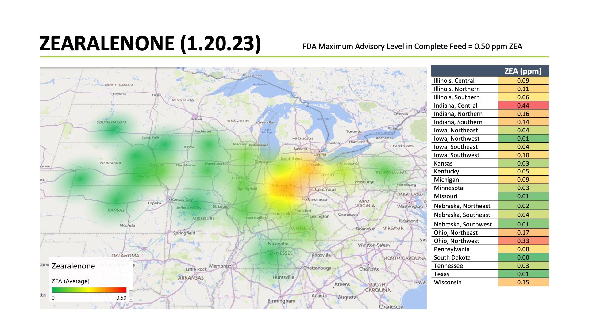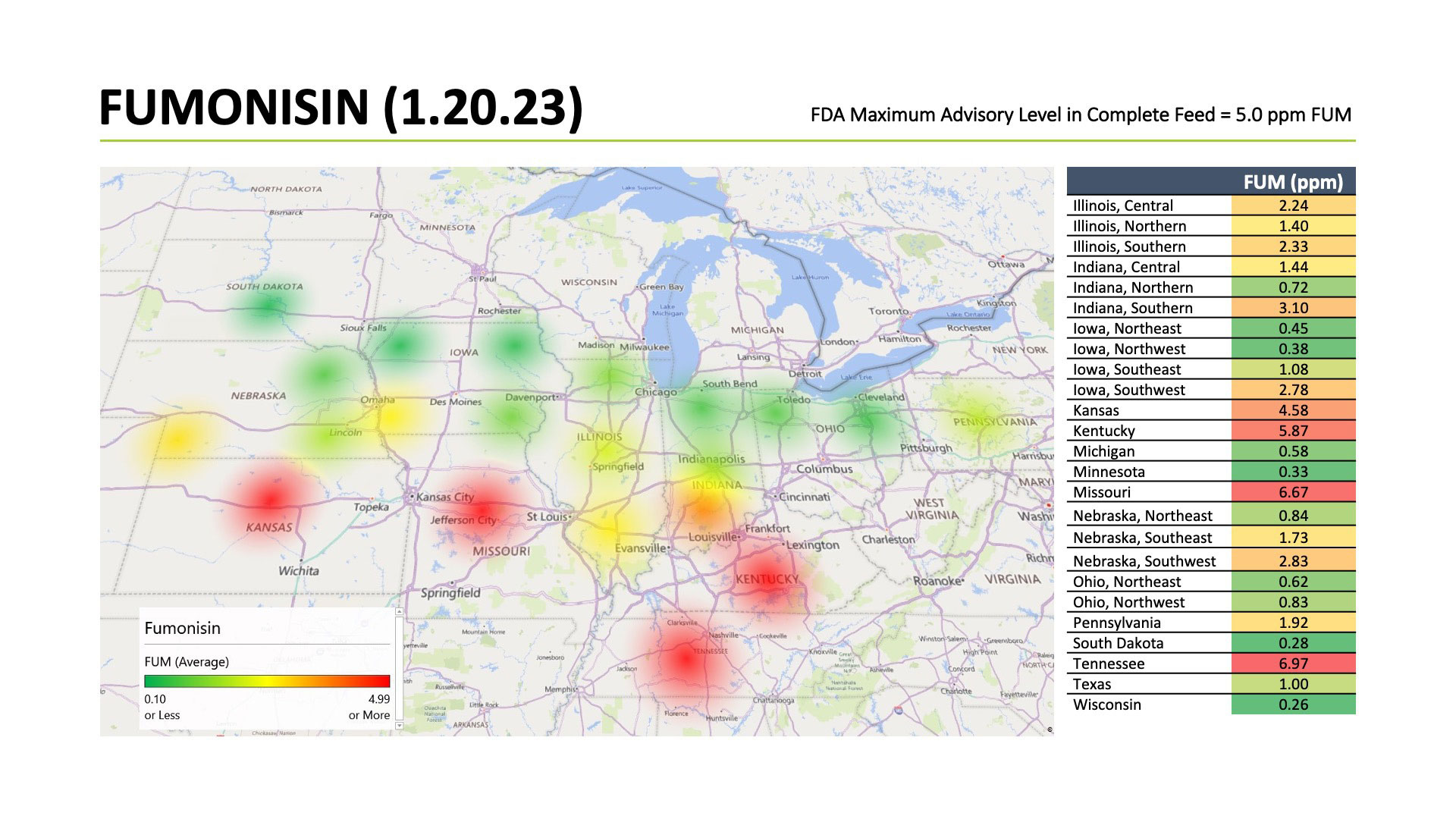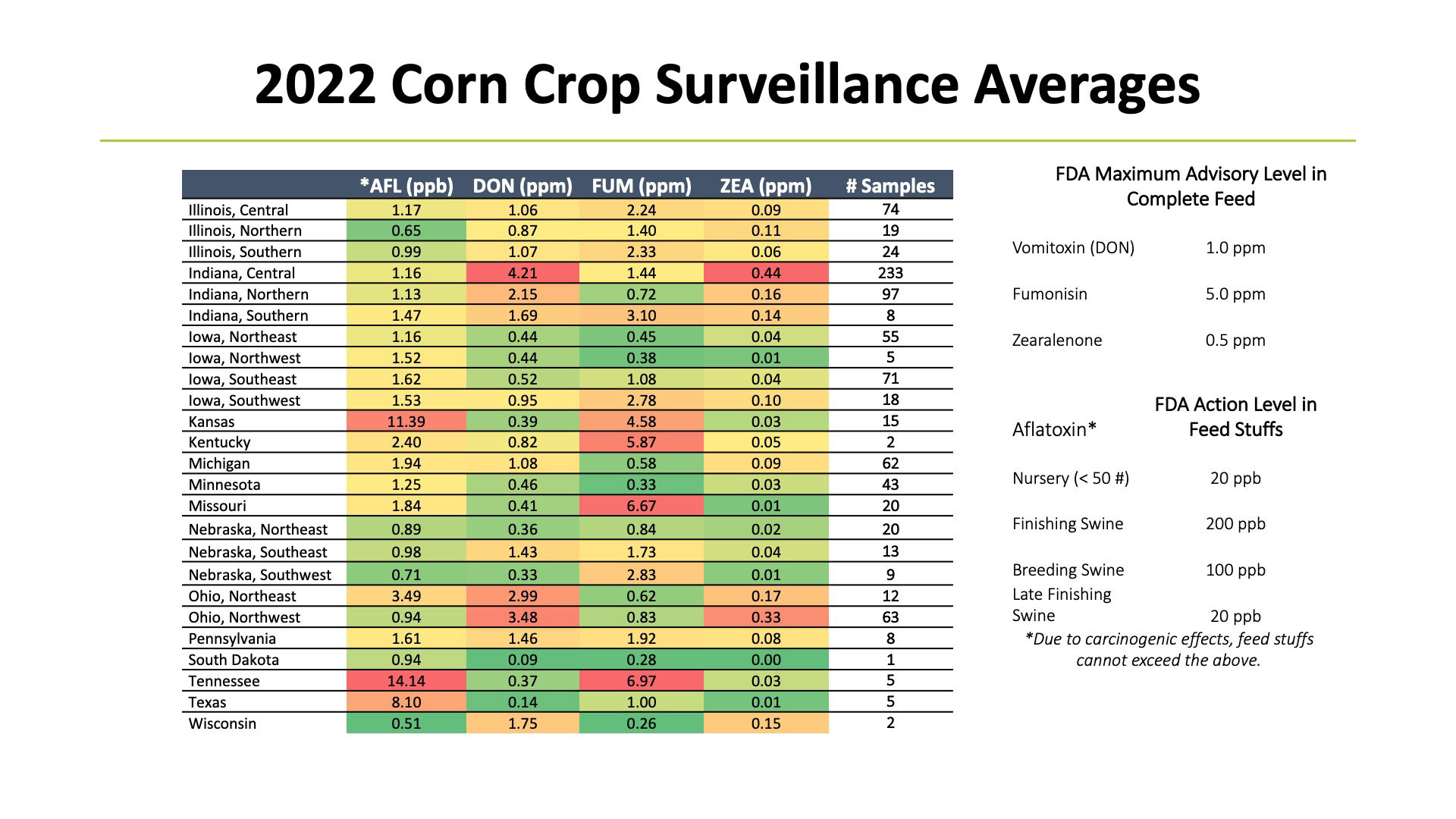 In a recent study conducted by United Animal Health where 8 corn samples were taken from a single semi-load, vomitoxin variation ranged from 0.45 ppm.