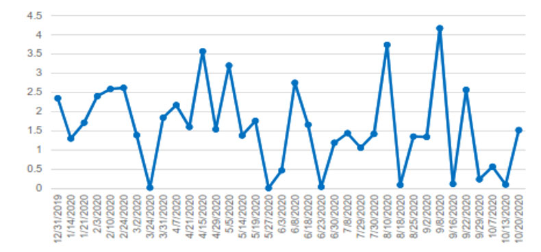Fluctuation over time from the same mill location in Northeast Indiana