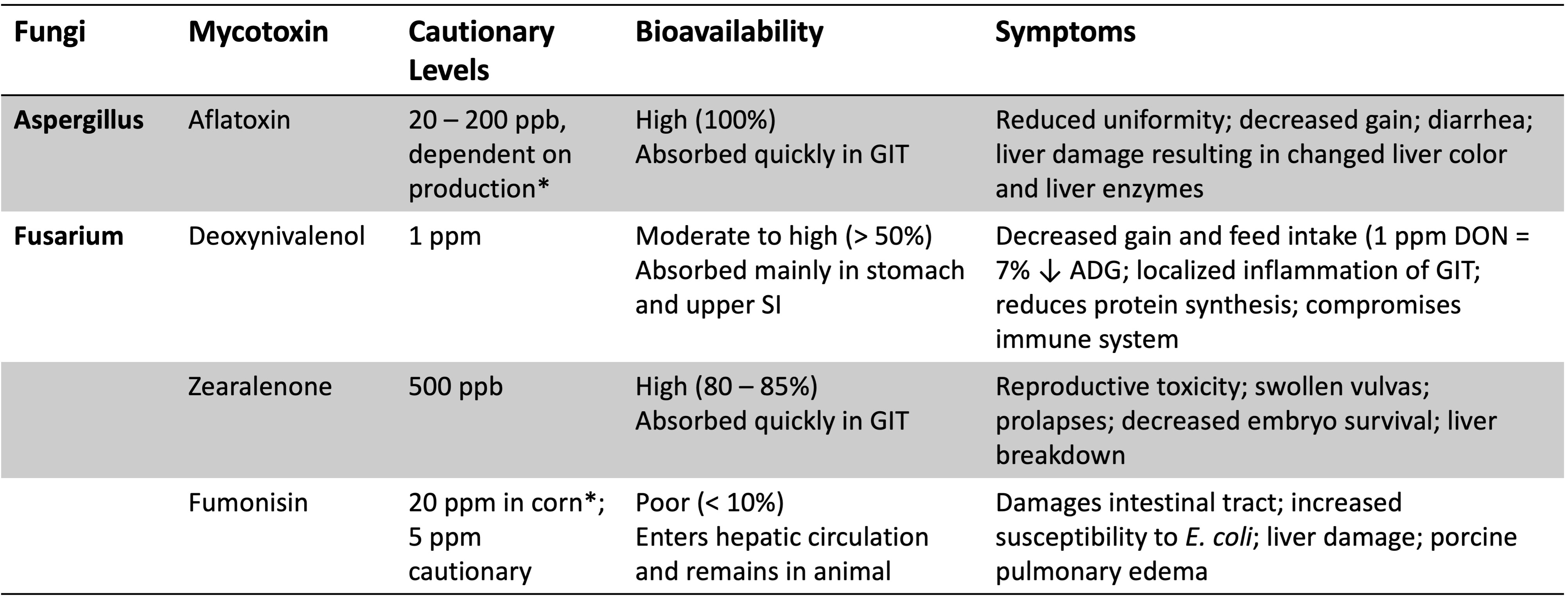 Increased proportions of Aspergillus in the swine GI tract have been negatively correlated with beneficial SCFA-producing bacteria (Arfken et al., 2019)