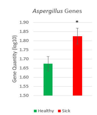 In United Animal Health swine surveillance work, rectal swabs from sick pigs show elevated quantities of a fungal marker gene from Aspergillus