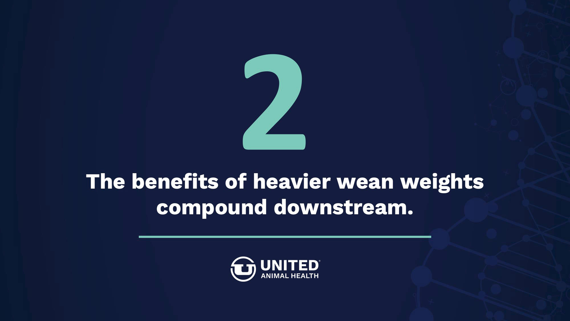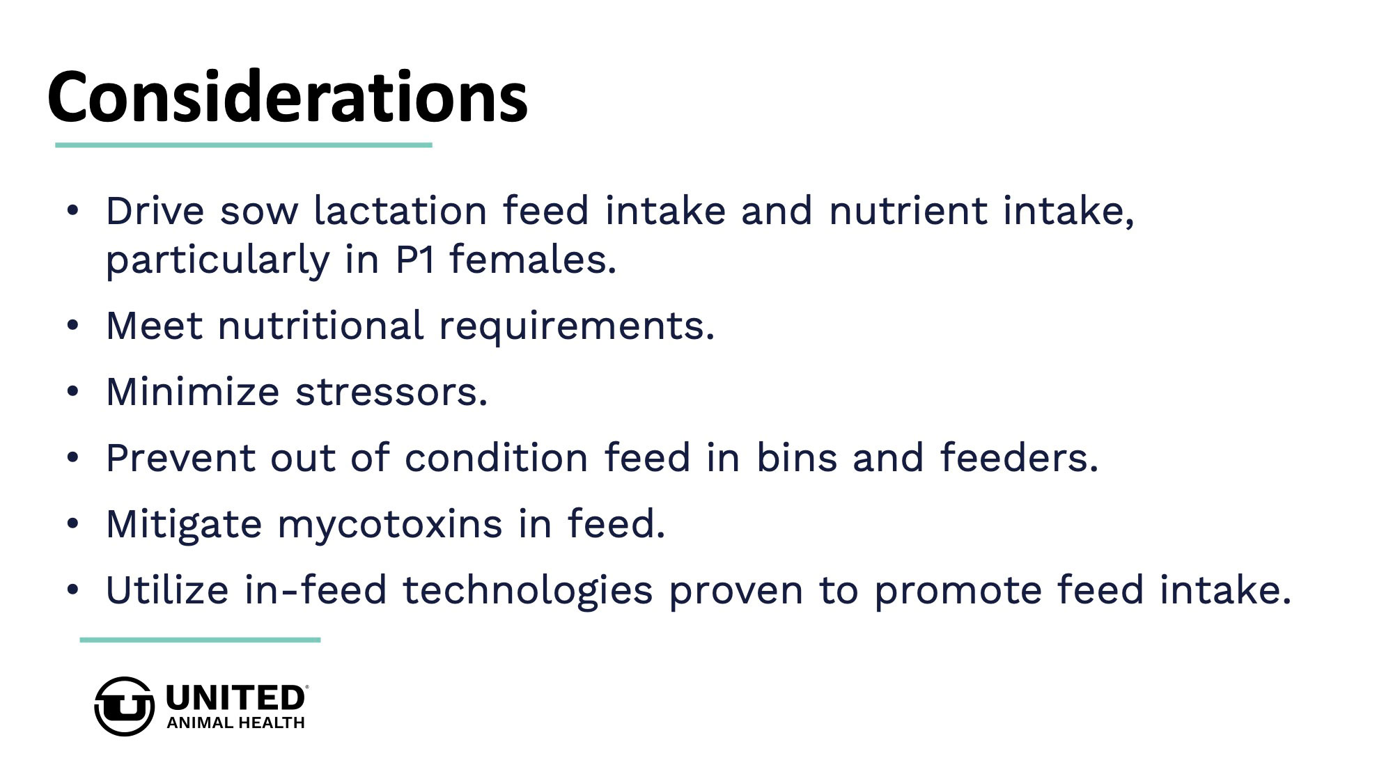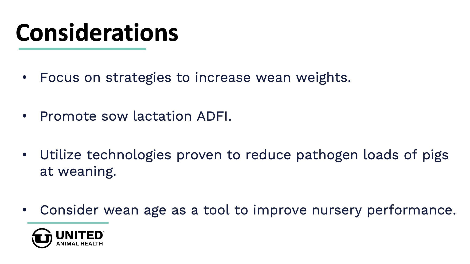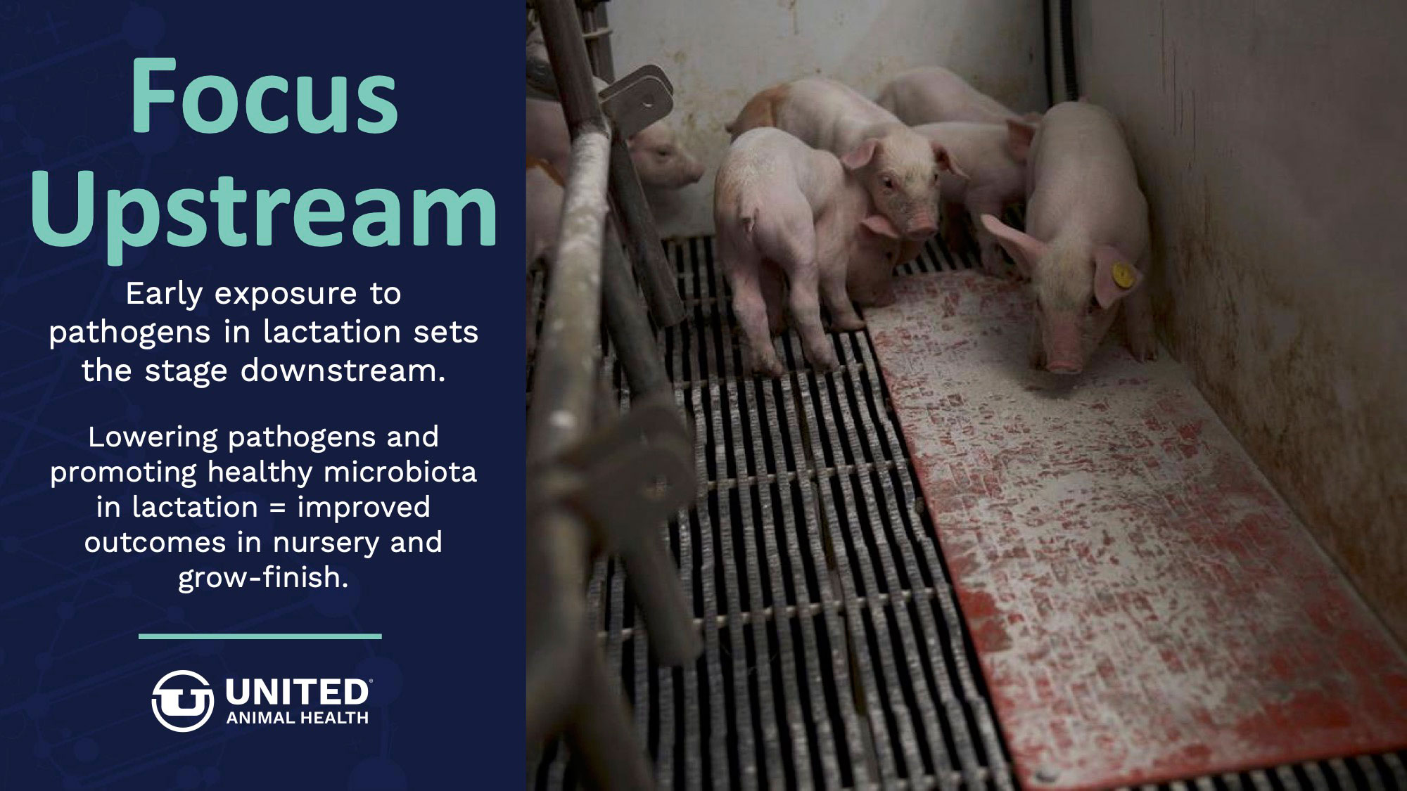Studies conducted at United Animal Health's research farms on more than 95,000 weaned pigs shows driving lactation performance results in downstream benefits. United Animal Health offers nutrition & specialty products, as well as technical expertise, to improve sow reproductive fitness and wean pig startup.