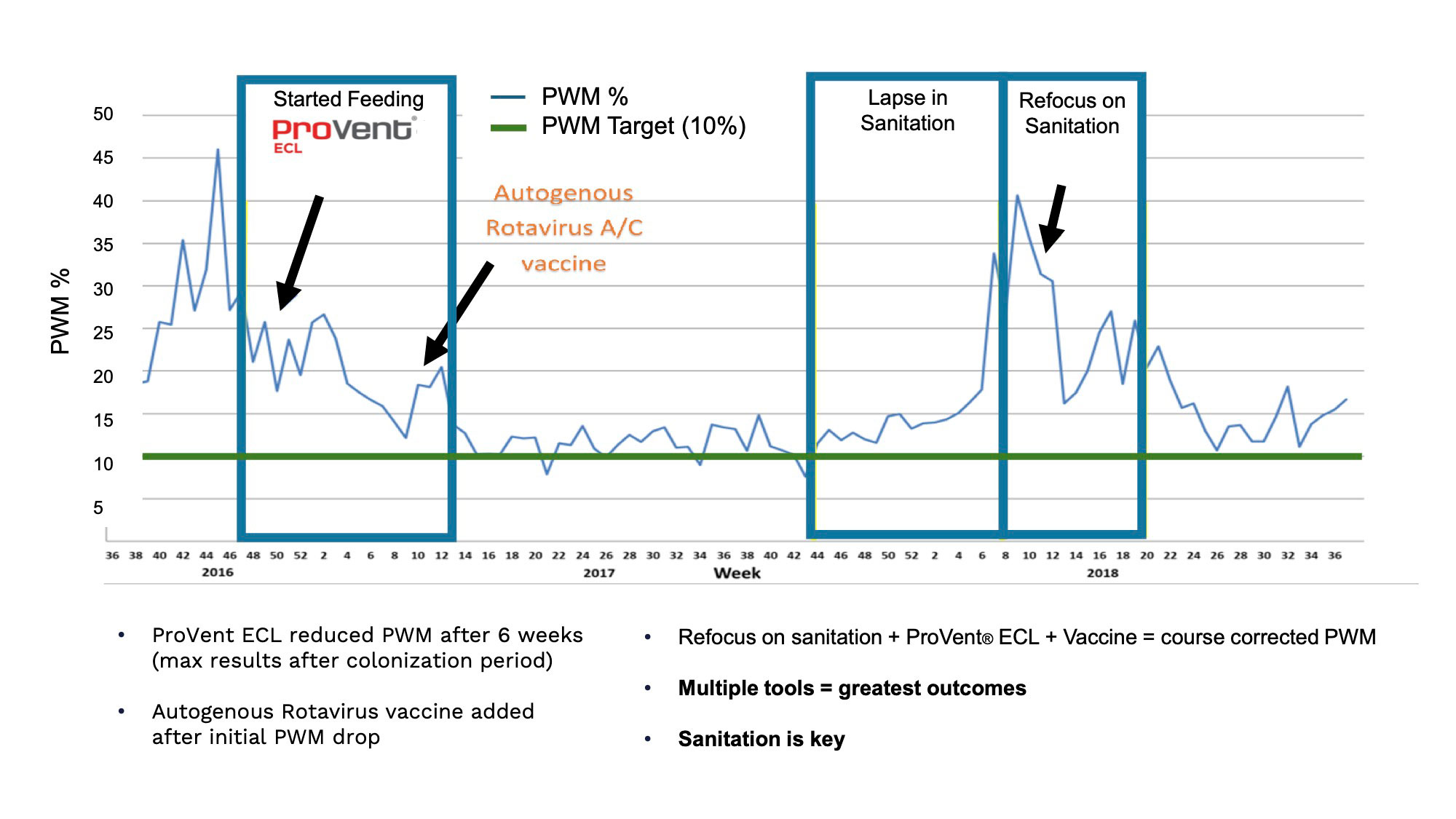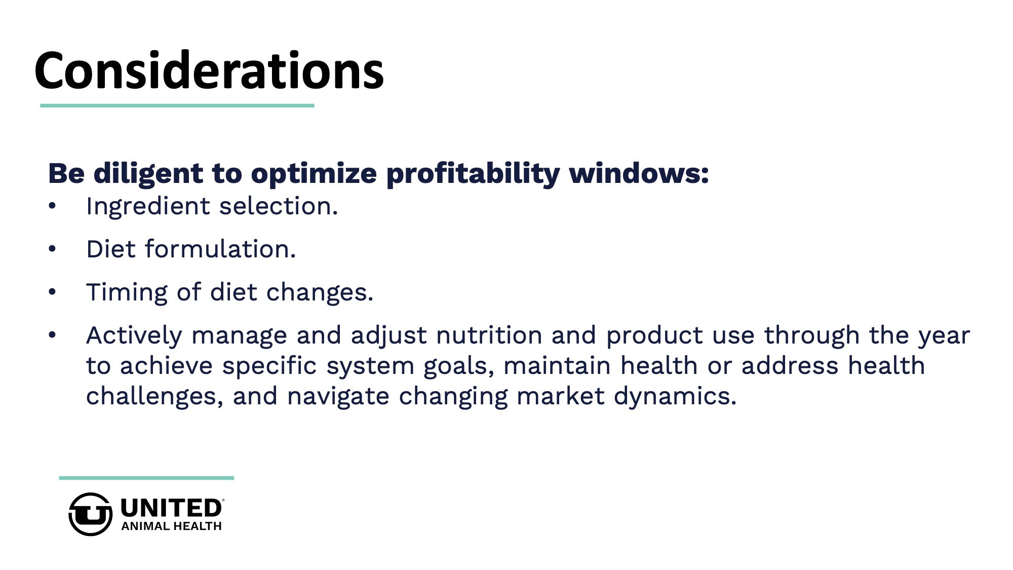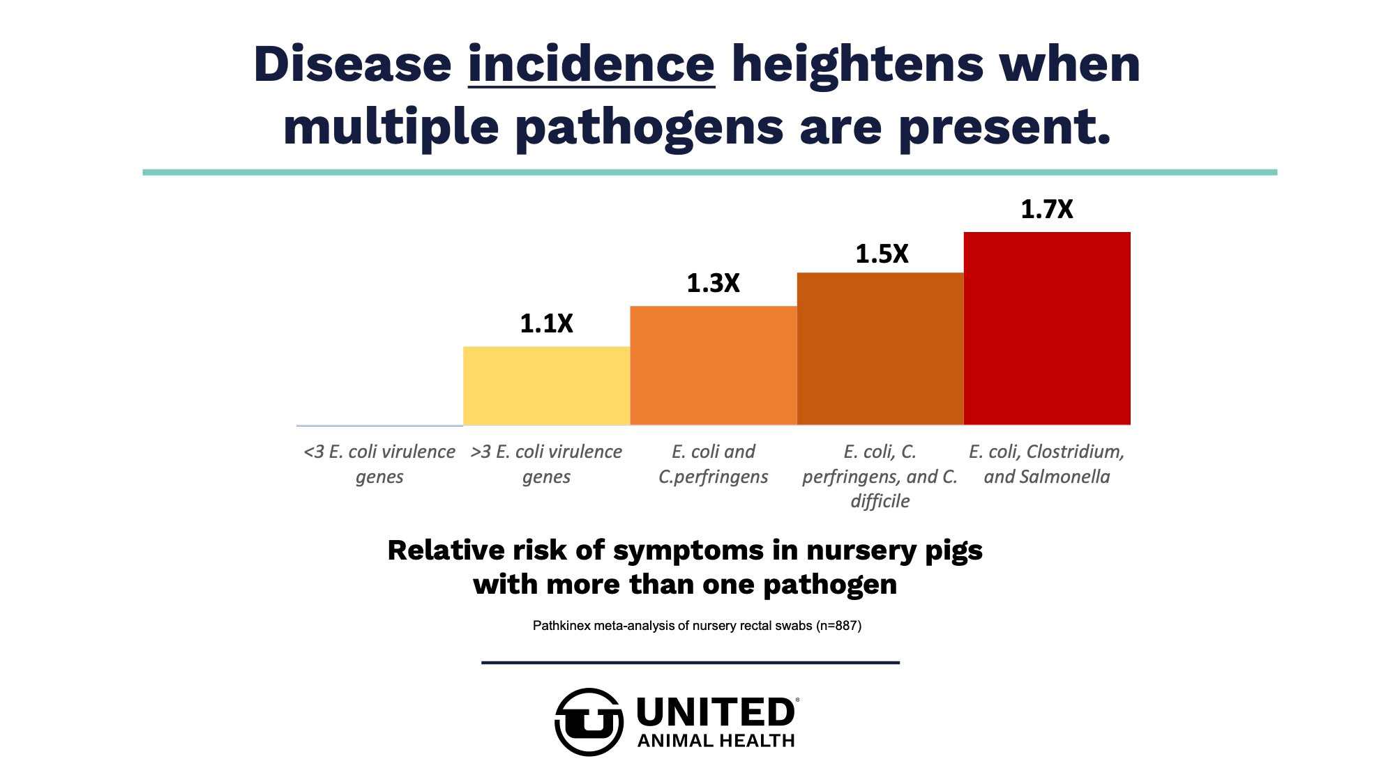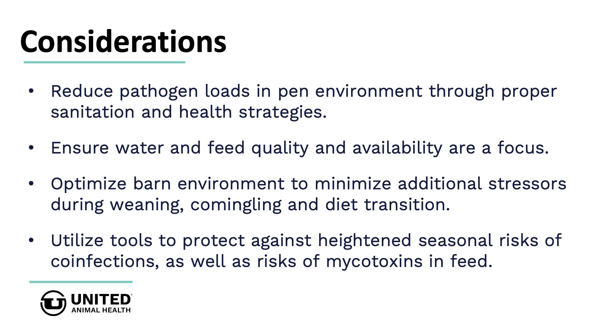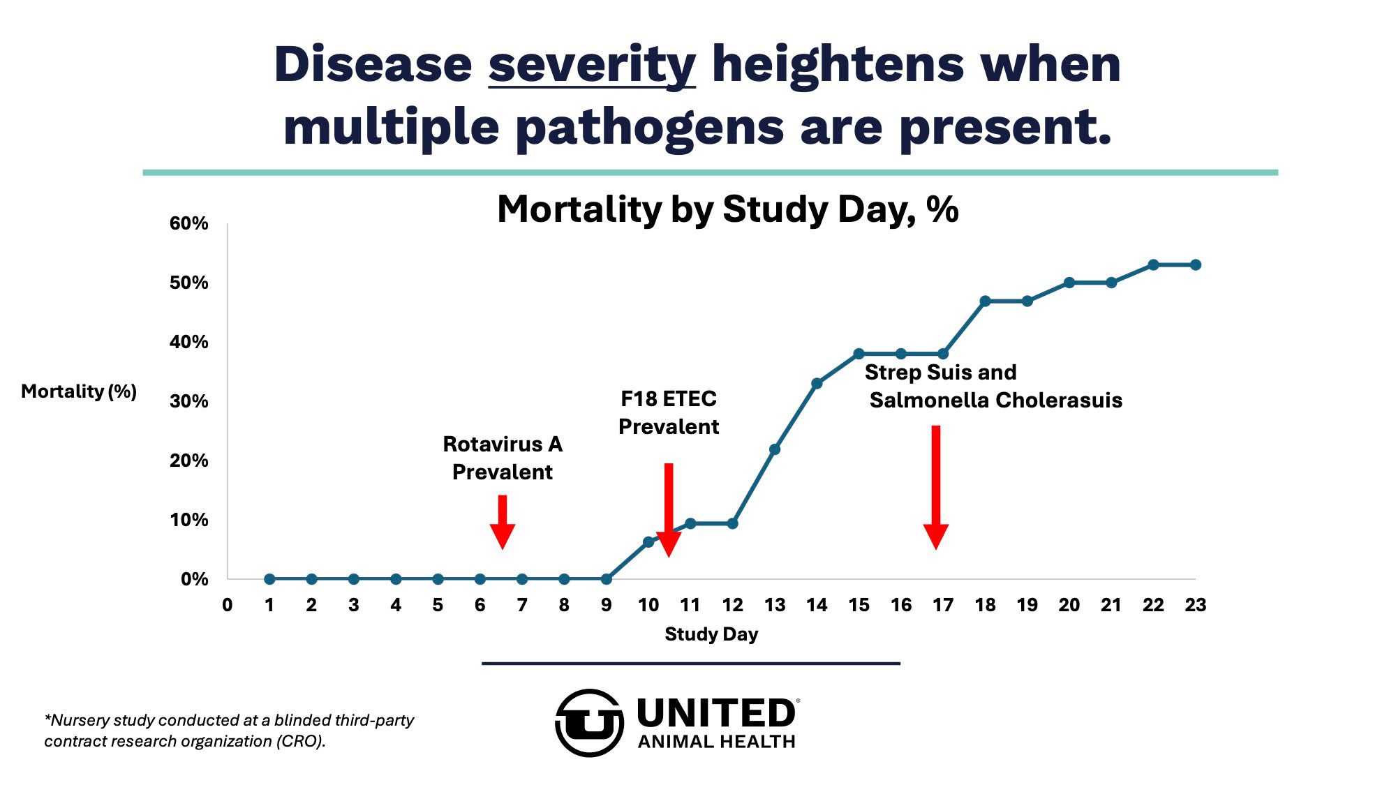 Studies conducted at United Animal Health's research farms on more than 95,000 weaned pigs shows driving lactation performance results in downstream benefits. United Animal Health offers nutrition & specialty products, as well as technical expertise, to improve sow reproductive fitness and wean pig startup.