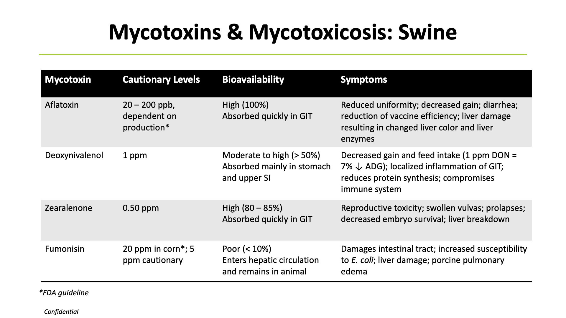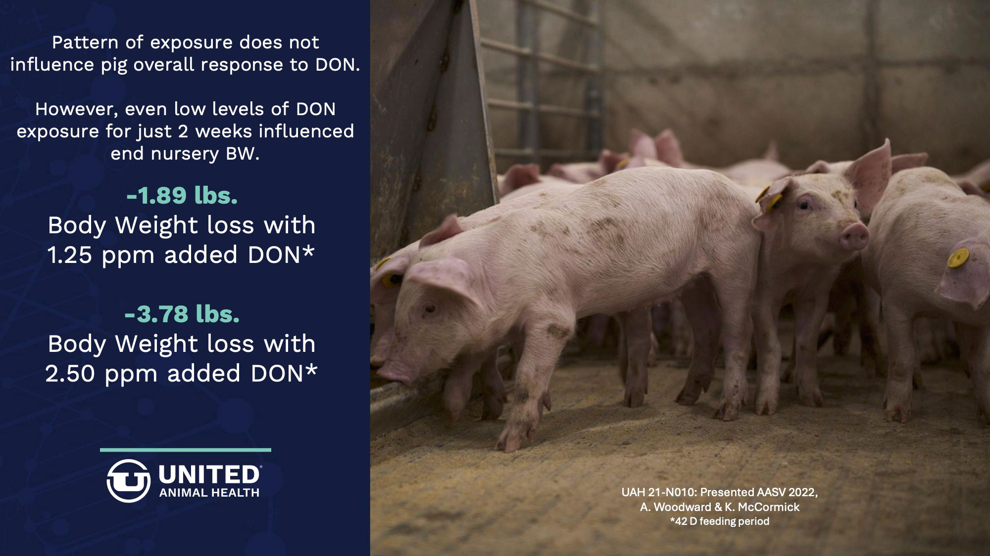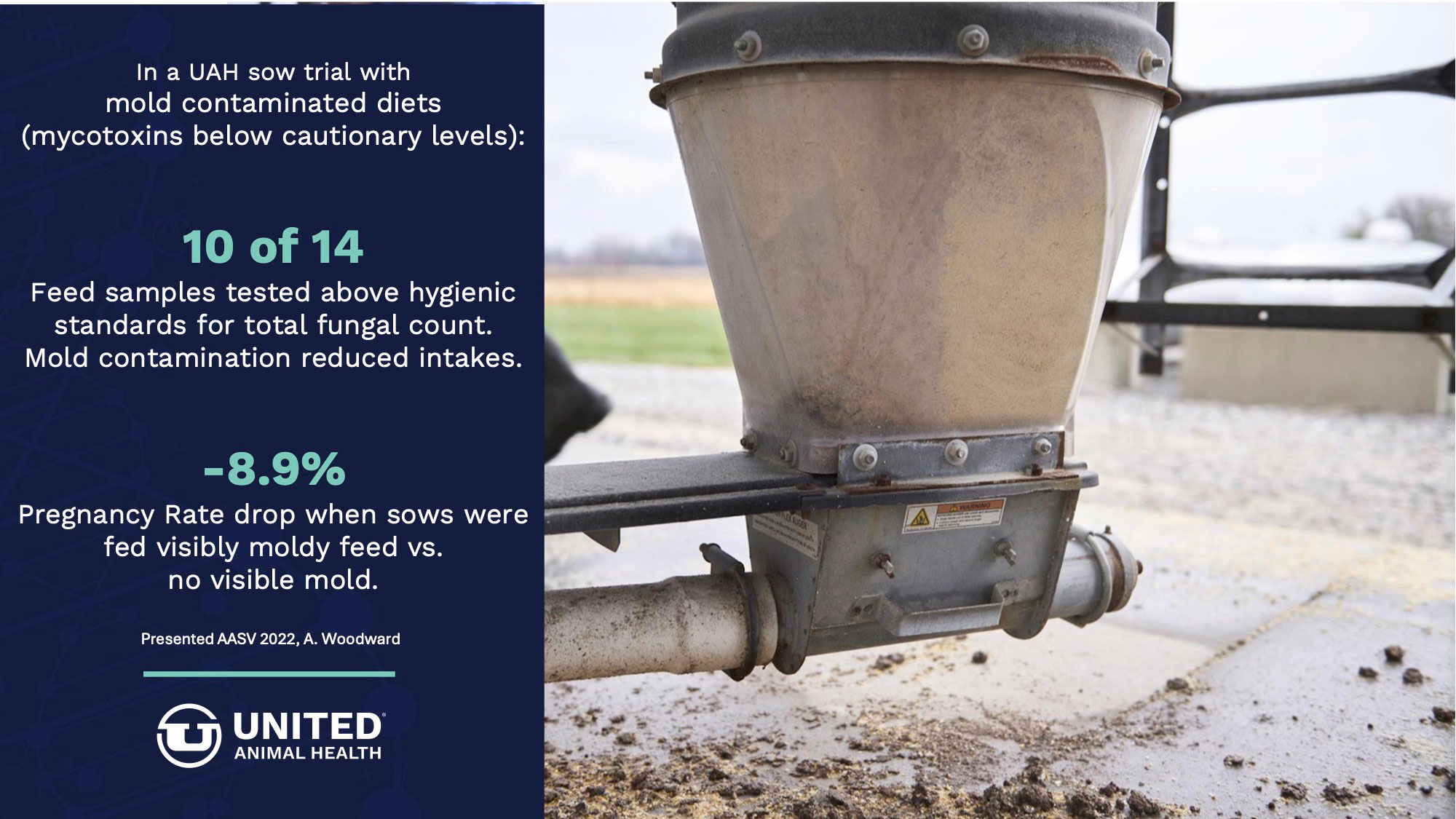 Since 2010, United Animal Health's mycotoxin research includes more than 80 animal trials focused on understanding mycotoxins' impact on health and performance.