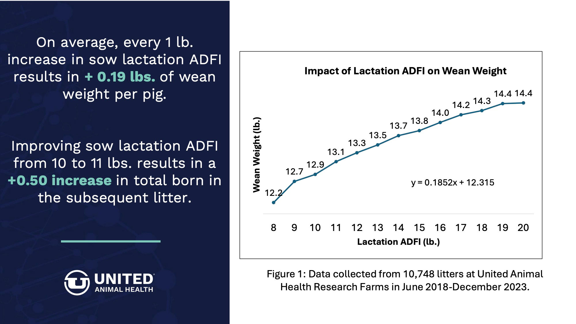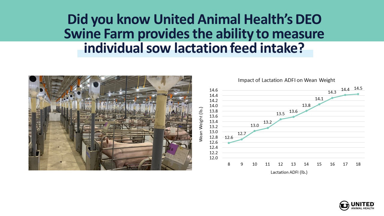 Since 2018, data collected on over 8,800 litters at United Animal Health research farms has shown improving lactation feed intake improves weaned pig performance.