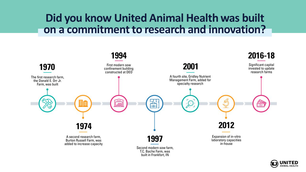 ADDITIONAL TEXT: In 1970, the first United Animal Health research farm, the Donald E. Orr Jr Farm was built on a commitment to research and innovation.