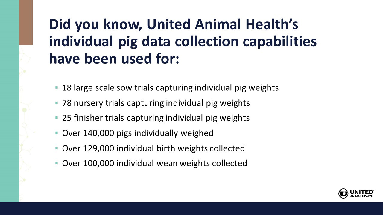 United Animal Health’s individual pig data collection capabilities have been used for: