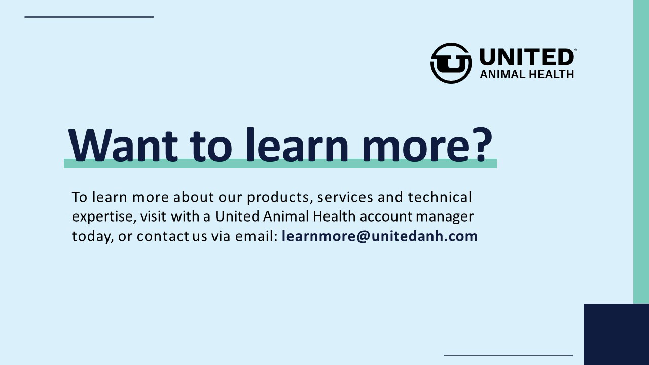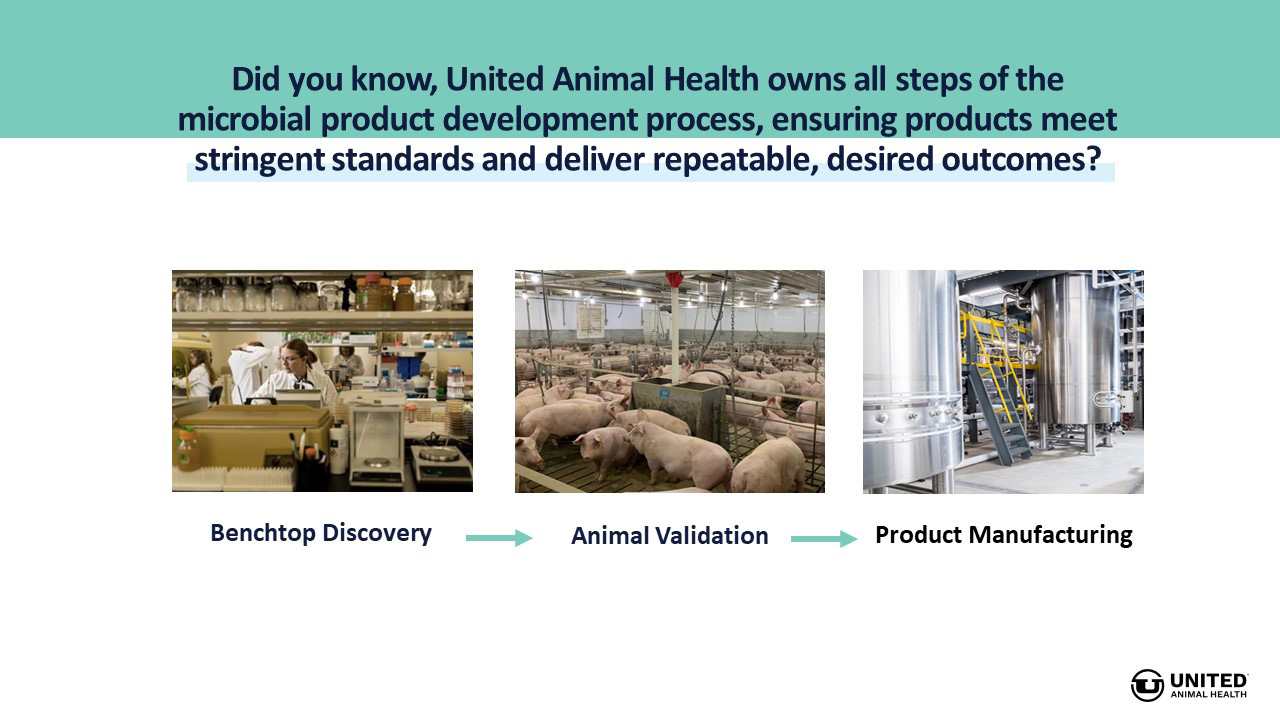 United Animal Health owns all steps of the microbial development process to ensure products meet stringent standards and deliver repeatable, desired outcomes. United Animal Health products are also validated through extensive animal trials at our owned research facilities to deliver consistent, desirable results.